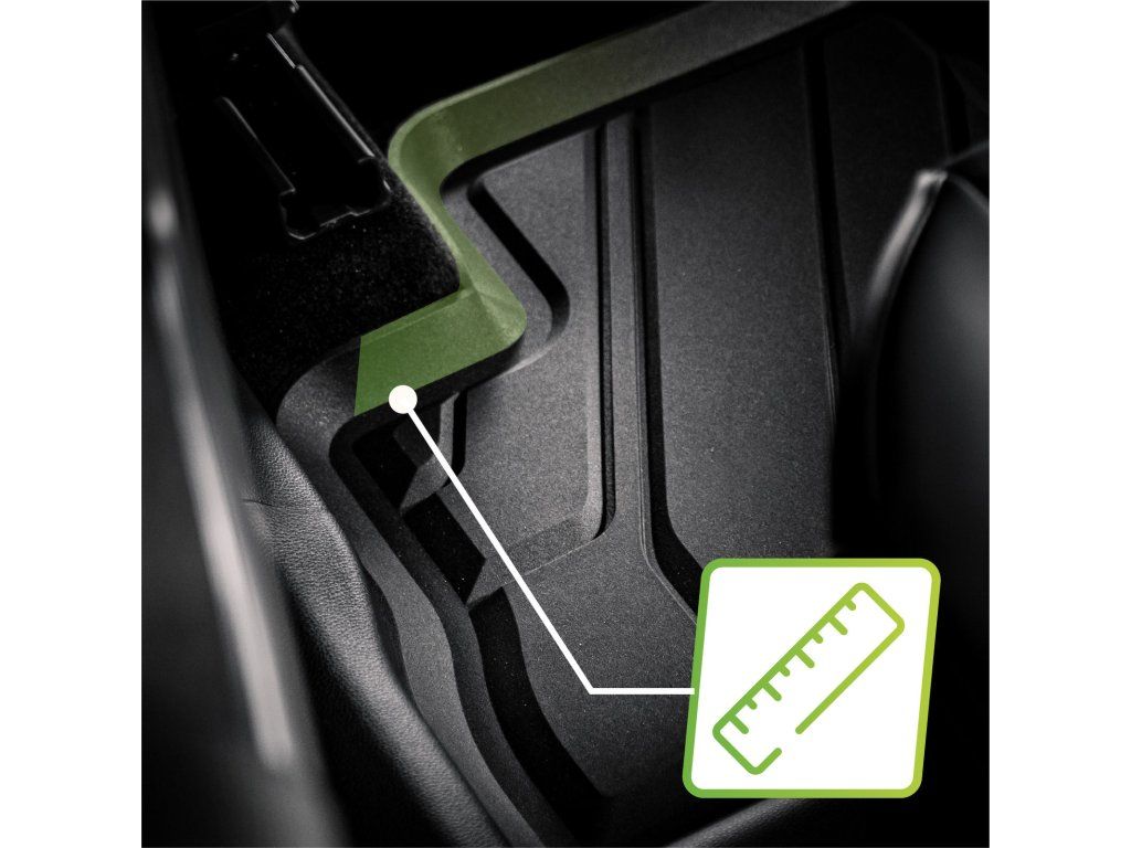 Eko gumové rohože mají 3–4cm zvýšený okraj, který zabraňuje nečistotě proniknout mimo rohož. Kanálky odvádějí tekutinu z povrchu rohože a drží ji v její spodní části. Díky tomu se už nemusíte bát vody, sněhu, štěrku a jiných nečistot. Auto rohože jsou přizpůsobeny přesným rozměrům podlahy Vašeho auta. Tvar gumové rohože je vyměřen pomocí 3D laserového skenování. Navíc tyto vysoce kvalitní rohože nepáchnou po gumě jako jiné podobné rohože a koberce.